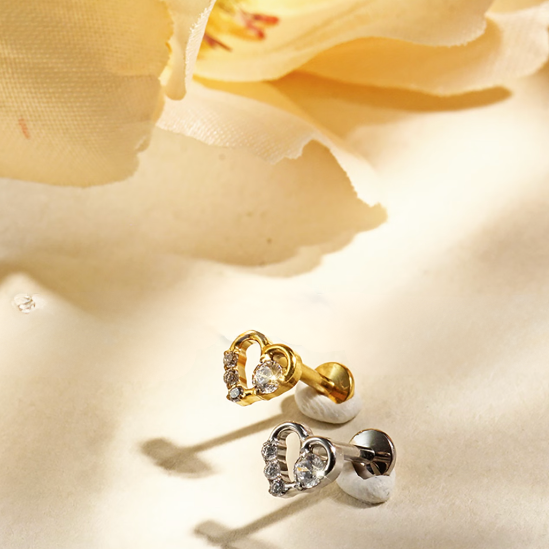 Piercing Labret Titânio Coração Com Zircônia Cravejada